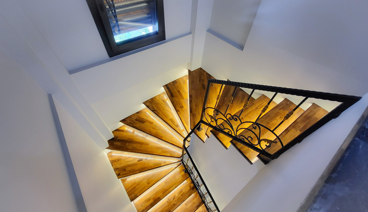 • Birinci sınıf malzeme ve işçilik, merdivenler masif ahşap