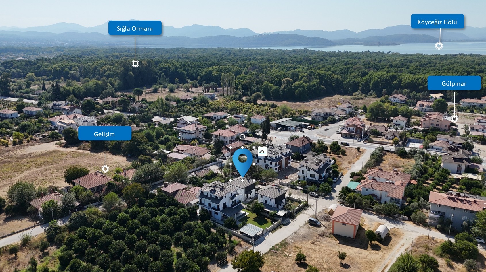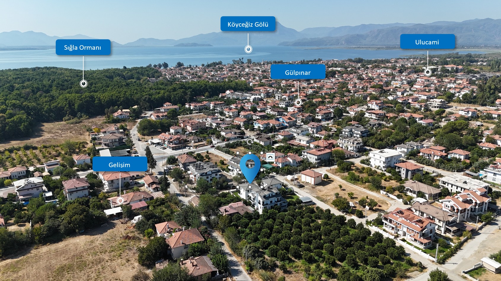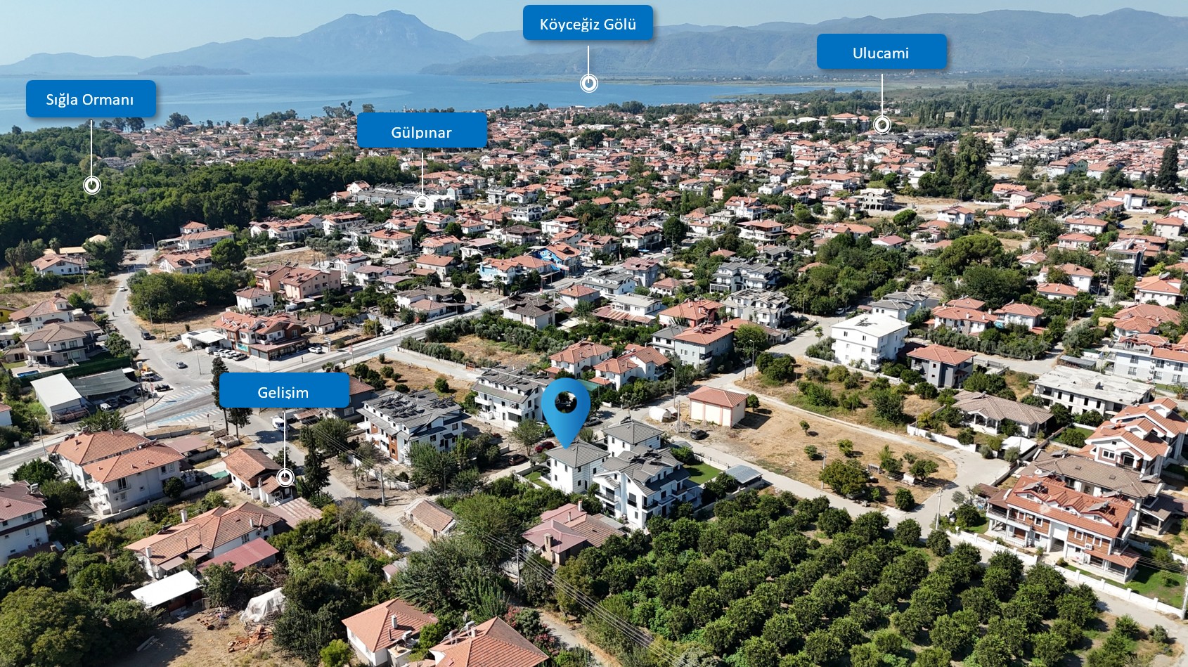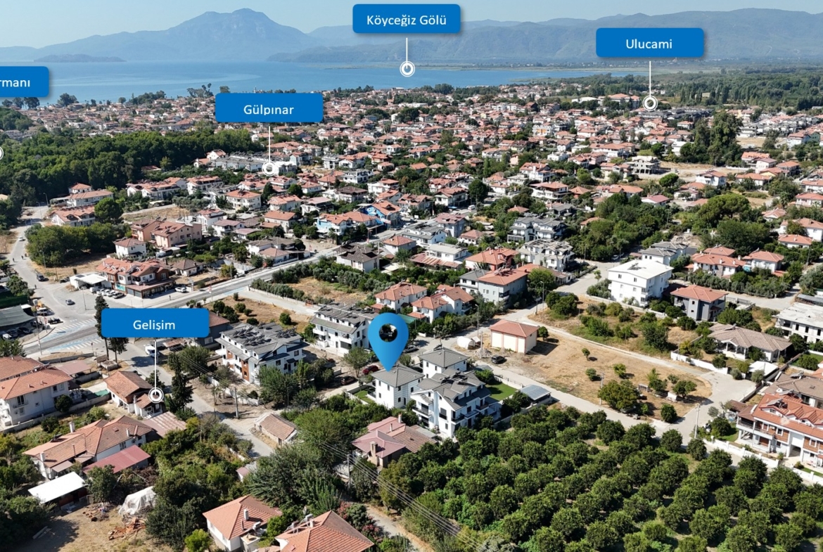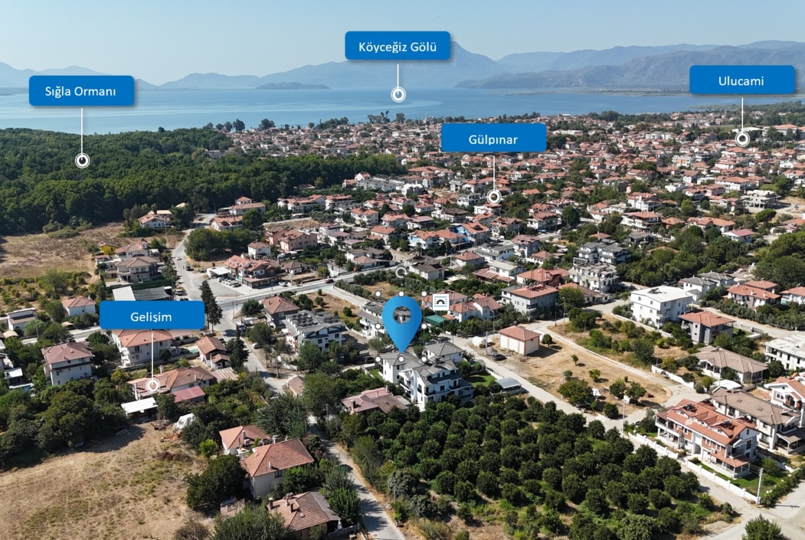 Köyceğiz Gölü, çarşı ve günlük ihtiyaç noktalarına yakın; aynı zamanda doğayla iç içe, sakin bir yaşam alanı.