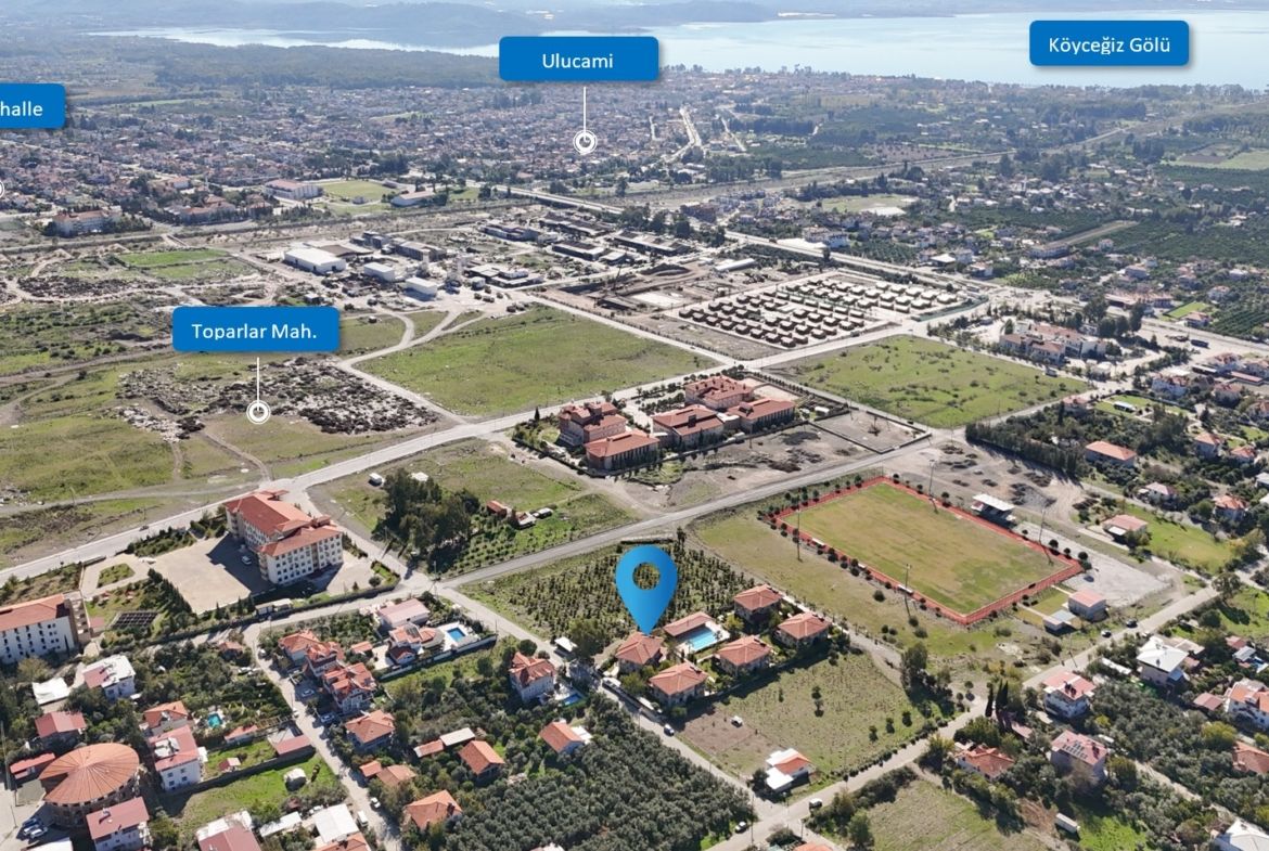 Köyceğiz’in villa bölgelerinden biri olan Toparlar Mahallesi’nde, göz alıcı doğa manzarası eşliğinde sizleri ağırlamak üzere hazırlanmış bu özel villa, lüks ve modern yaşamın kapılarını aralıyor.
